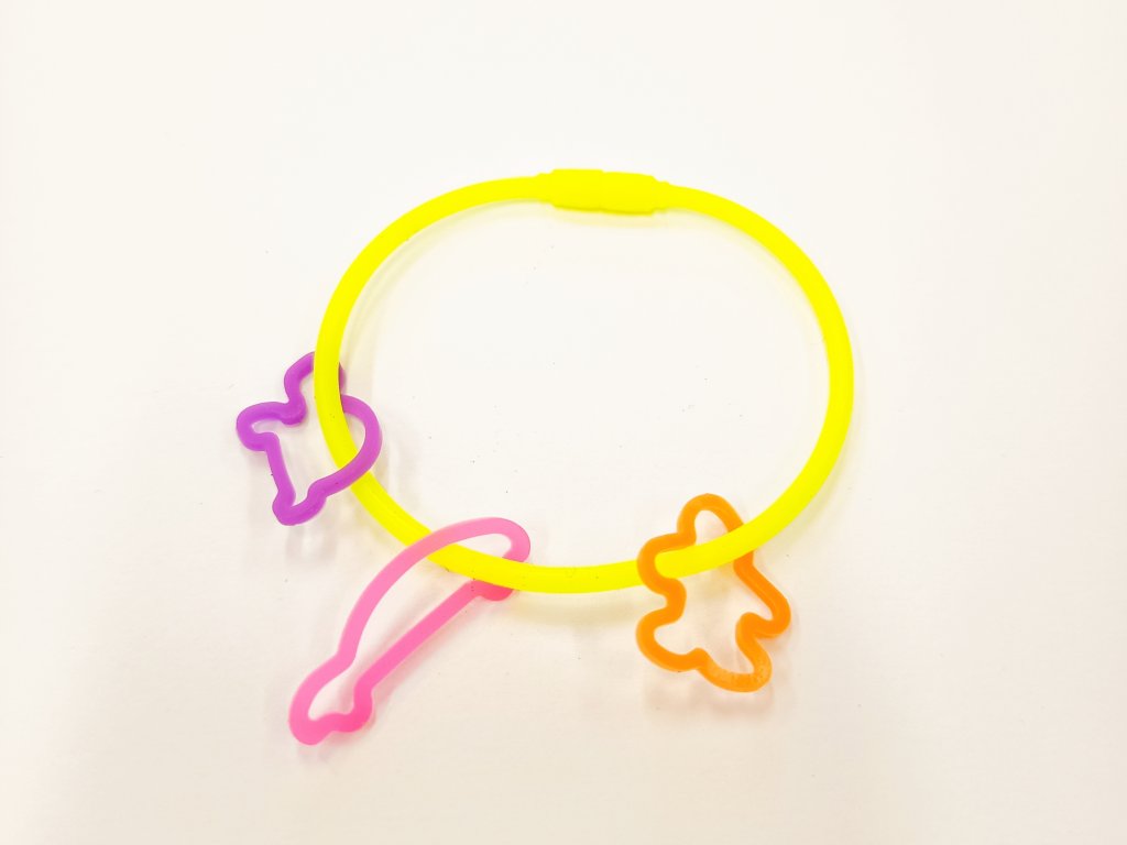 Náramek ze zlomků minerálů. Obvod cca 18 - 19 cm.