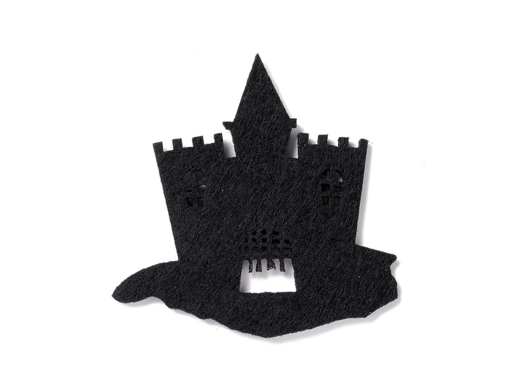 Halloween filcová dekorace hrad 9cm. Rozměr 96x96x2mm. Cena uvedena za 1 kus