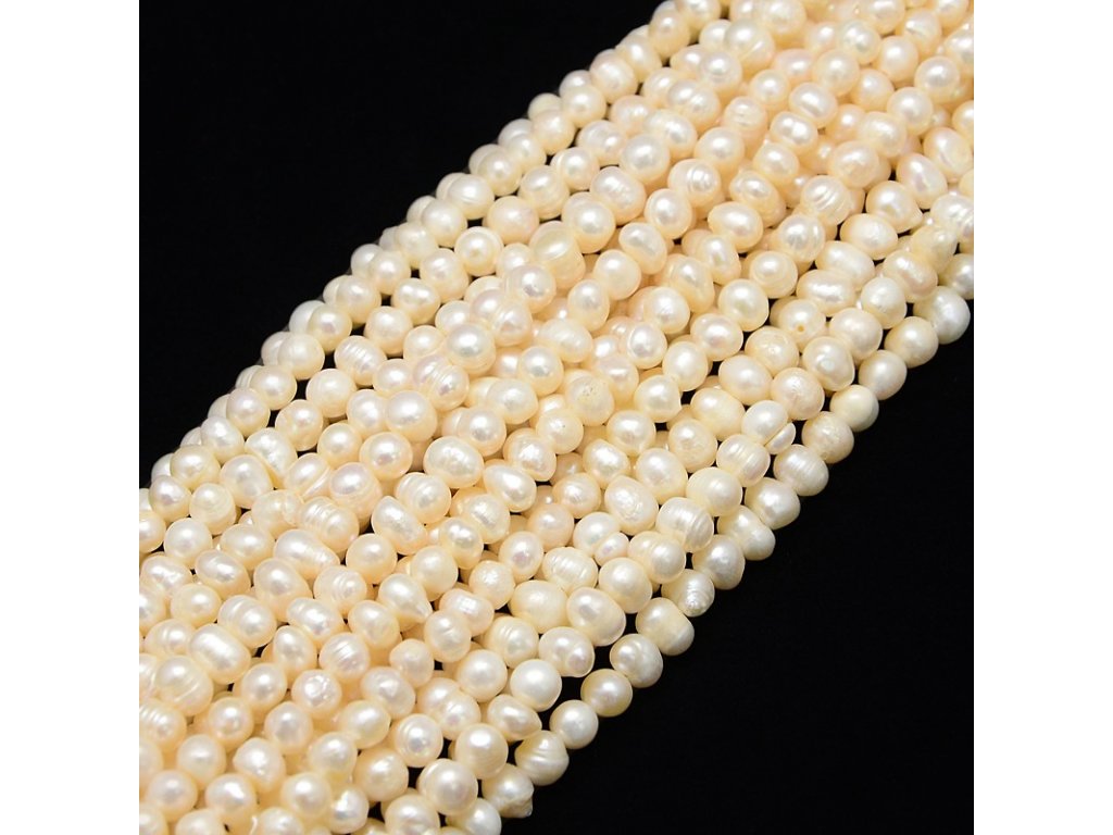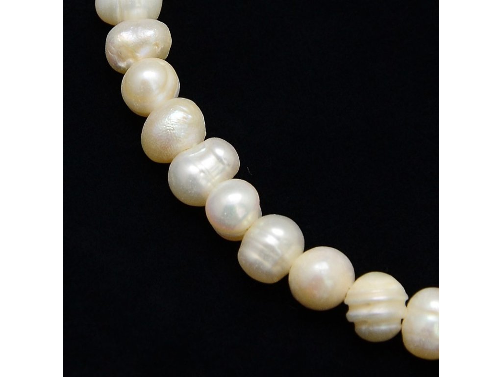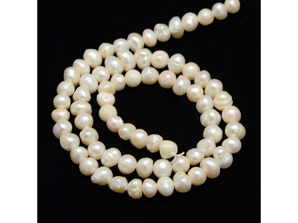 Perly říční 5~6mm šňůra cca 53-56 kusů perel