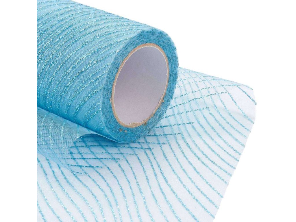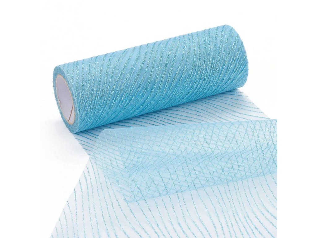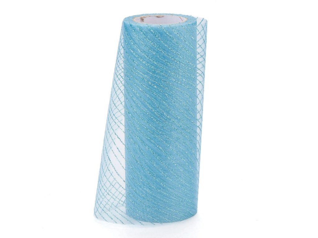 Dekorační síťovaná stuha 150mm modrá návin cca 9m.