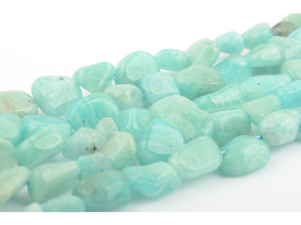 Neukončená šňůra s korálky ve tvaru valounků. Délka šňůry cca 37 cm +- 2cm. Rozměr valounků v rozmezí 5~11x5~7mm