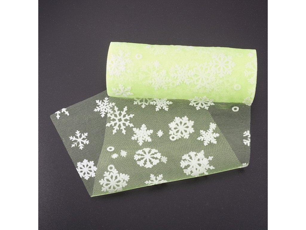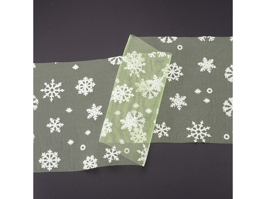 Vánoční stuha z organzy světle zelená šířka 15 cm délka cca 9m