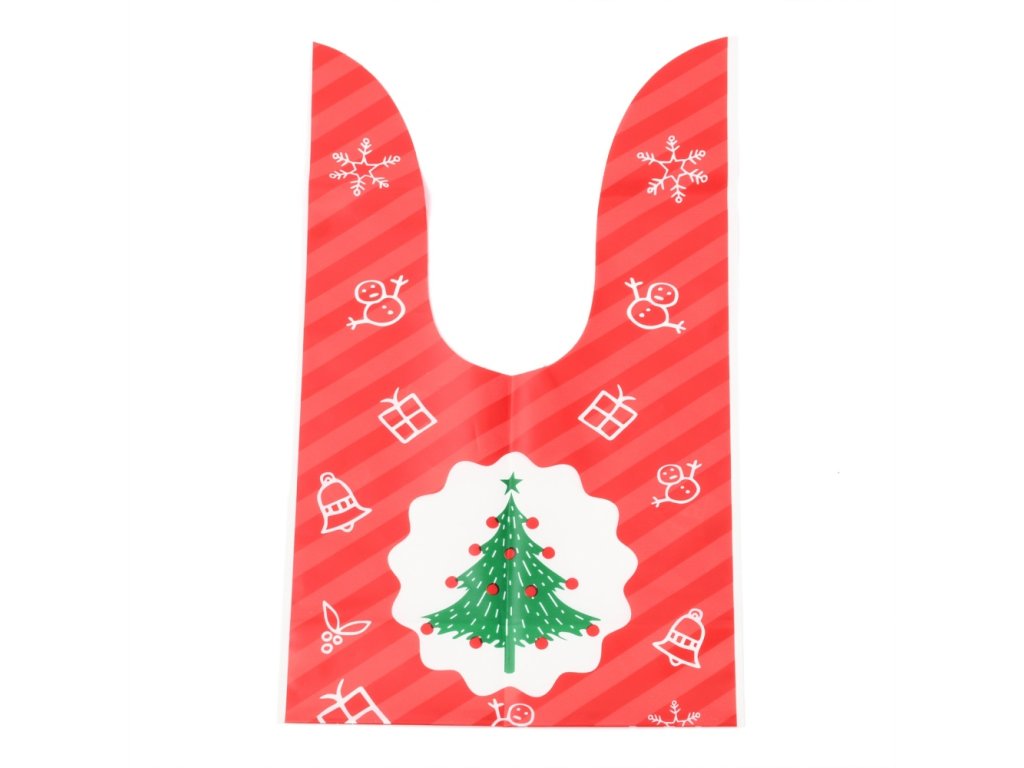 Vánoční zavazovací sáček červený / zelený stromeček 22x13cm