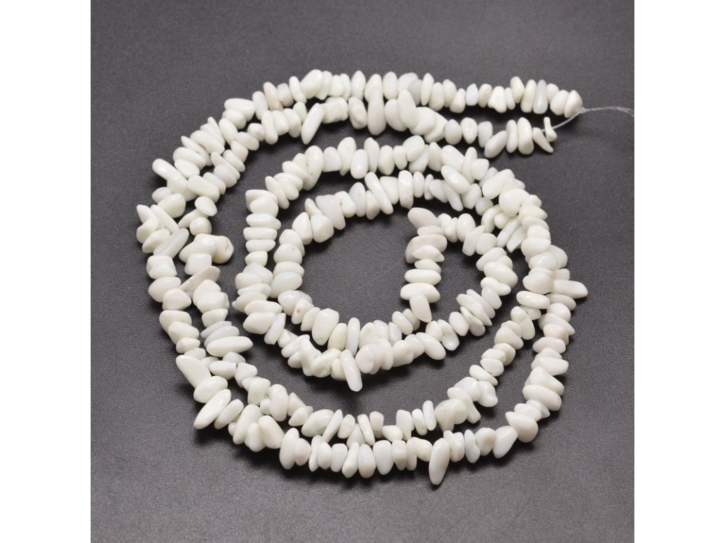 Achát bílý zlomky 5~8x5~8mm šňůra cca 80cm. Průvlak cca 1mm. Cena uvedena za 1 šňůru