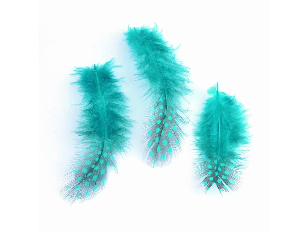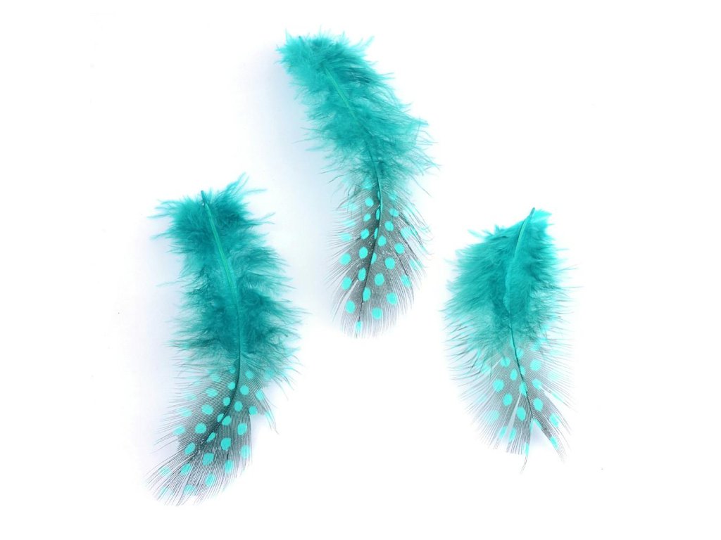 Slepičí peří tyrkysové 65~135x25~45mm 10 kusů v balení