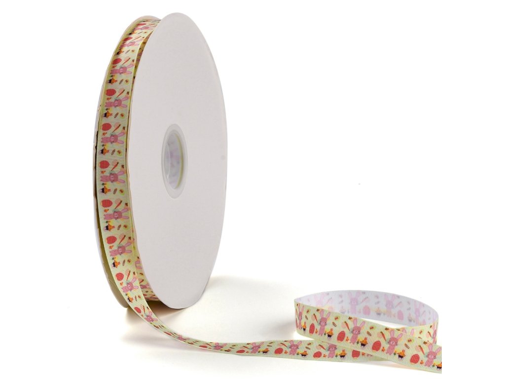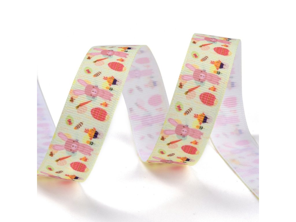 Grogrénová stuha s velikonočním motivem s jemným žebrováním. Stuha je široká 18 mm a prodává se po 3 m
