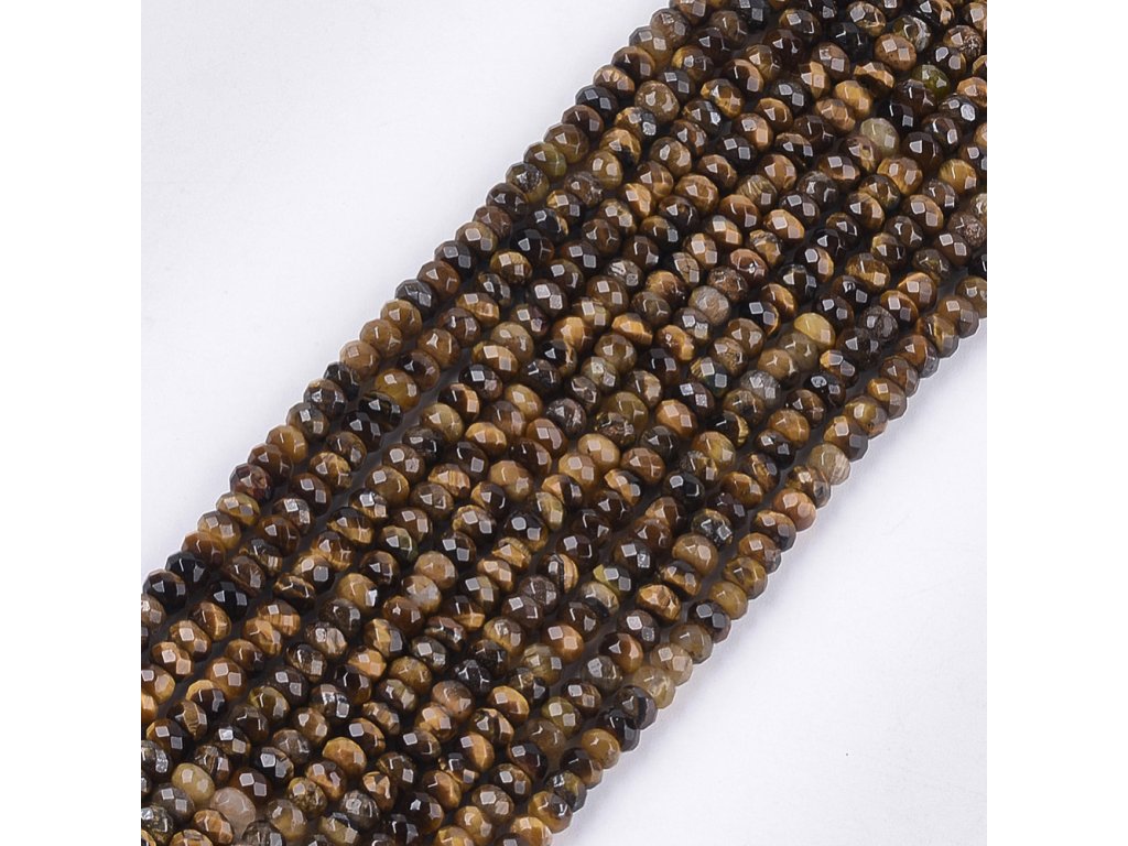 Tygří oko rondelky fasetované 4x3 mm (110 - 120 korálků)