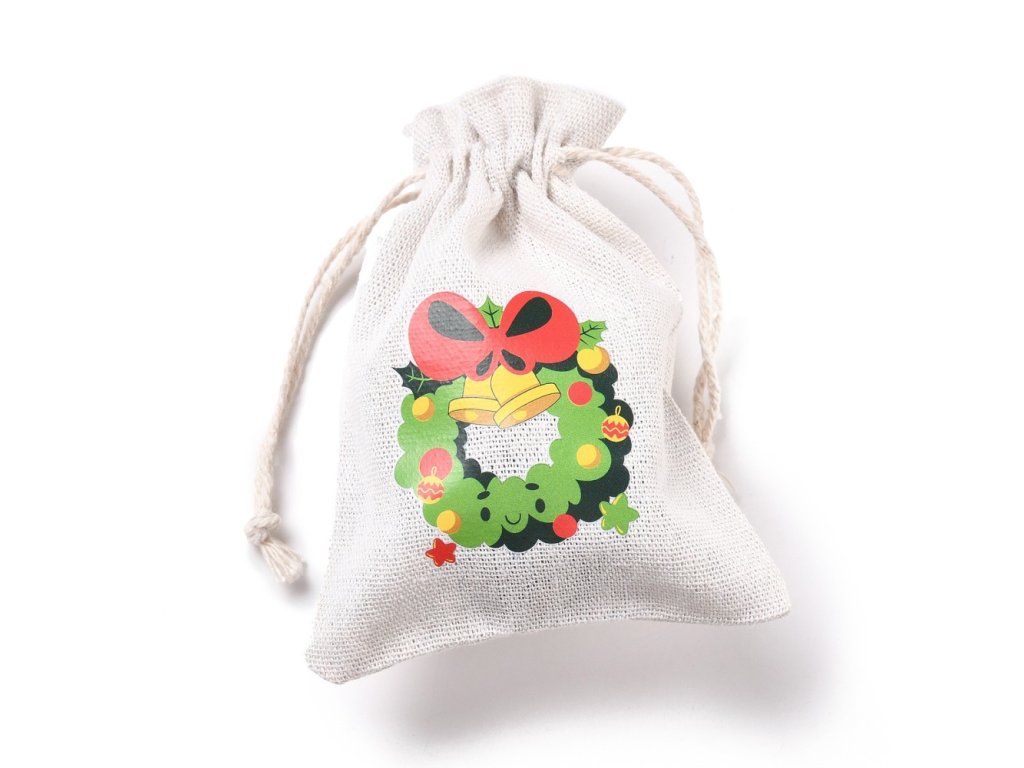 Vánoční bavlněný sáček věnec 13.8x10cm