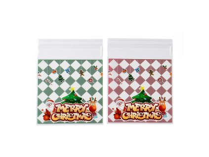 Vánoční samolepící celofánový sáček 10x10cm 2 motivy balení 95-100 kusů Cena uvedena za 1 balení.