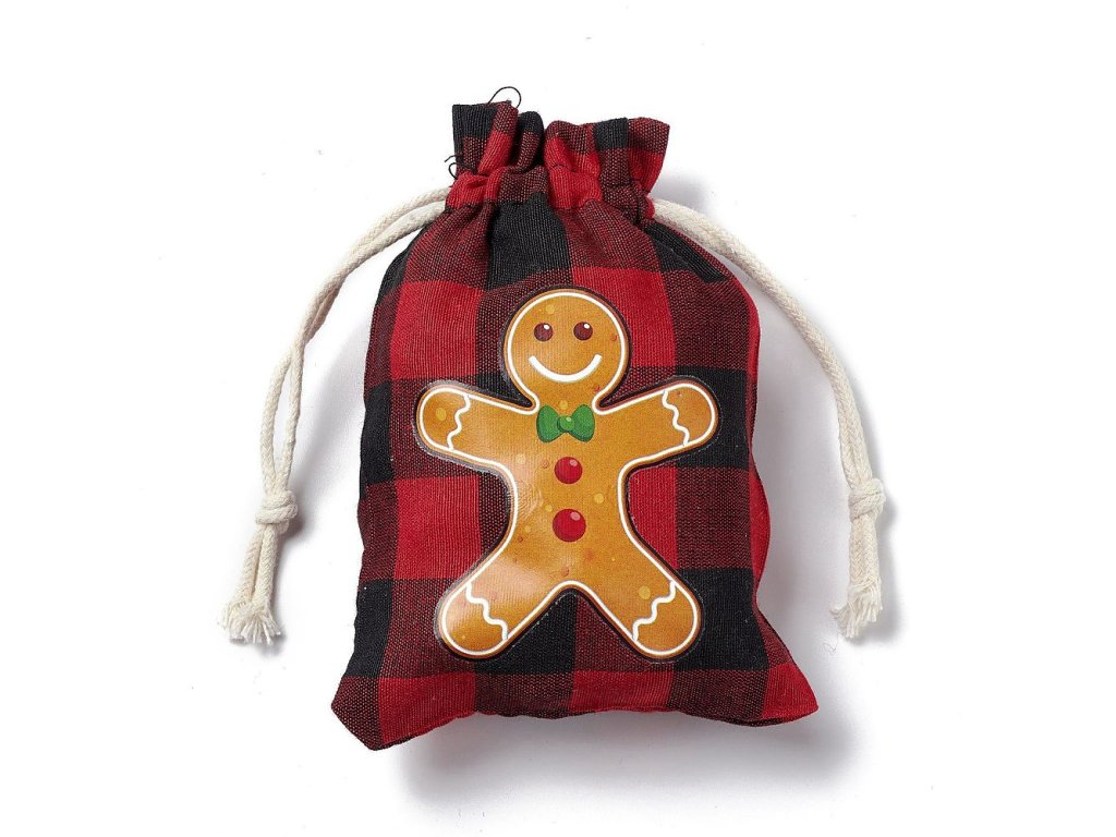 Bavlněný sáček s vánočním potiskem. Rozměr cca 14x10 cm