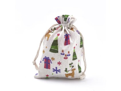 Bavlněný sáček s vánočním potiskem. Rozměr cca 14x10 cm