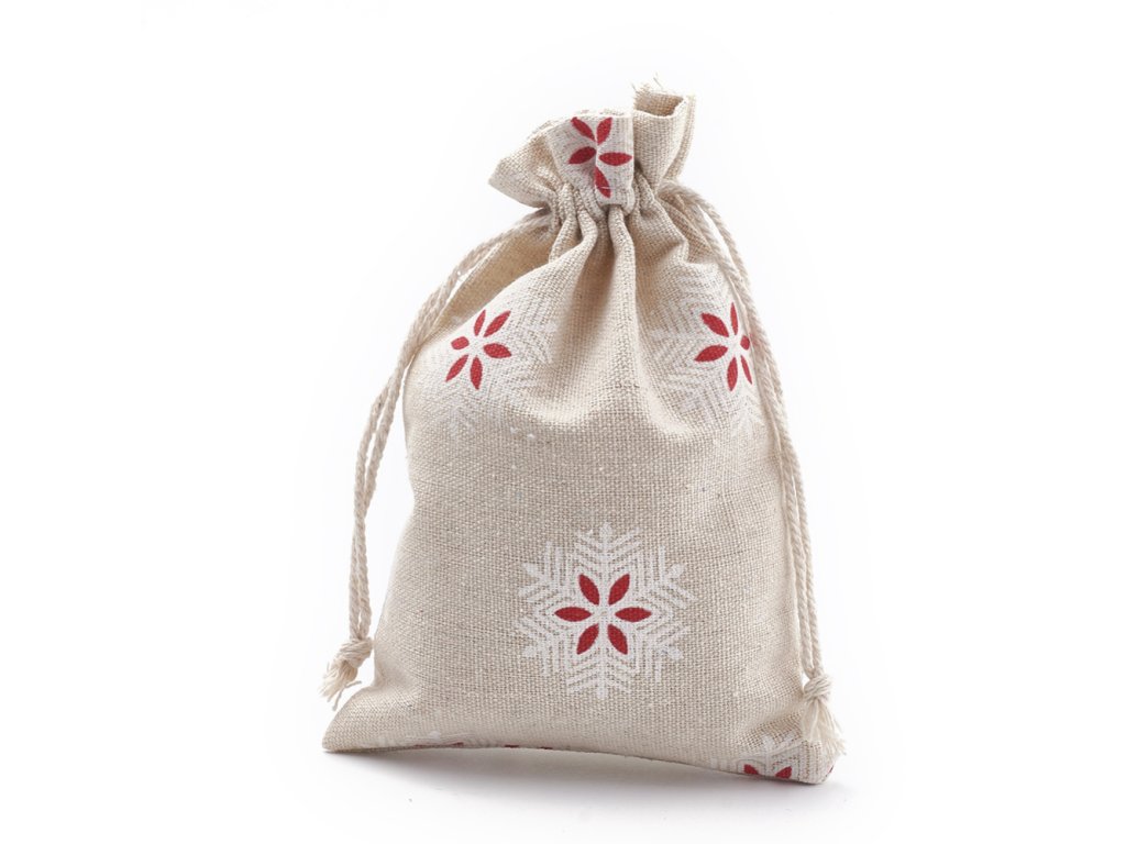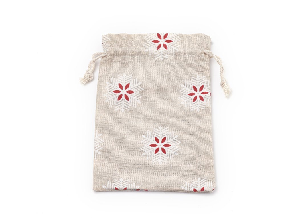 Bavlněný sáček s vánočním potiskem. Rozměr cca 14x10 cm