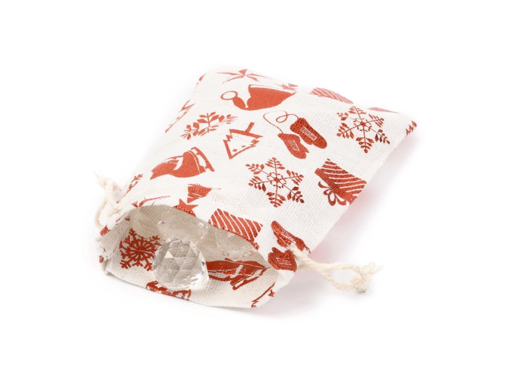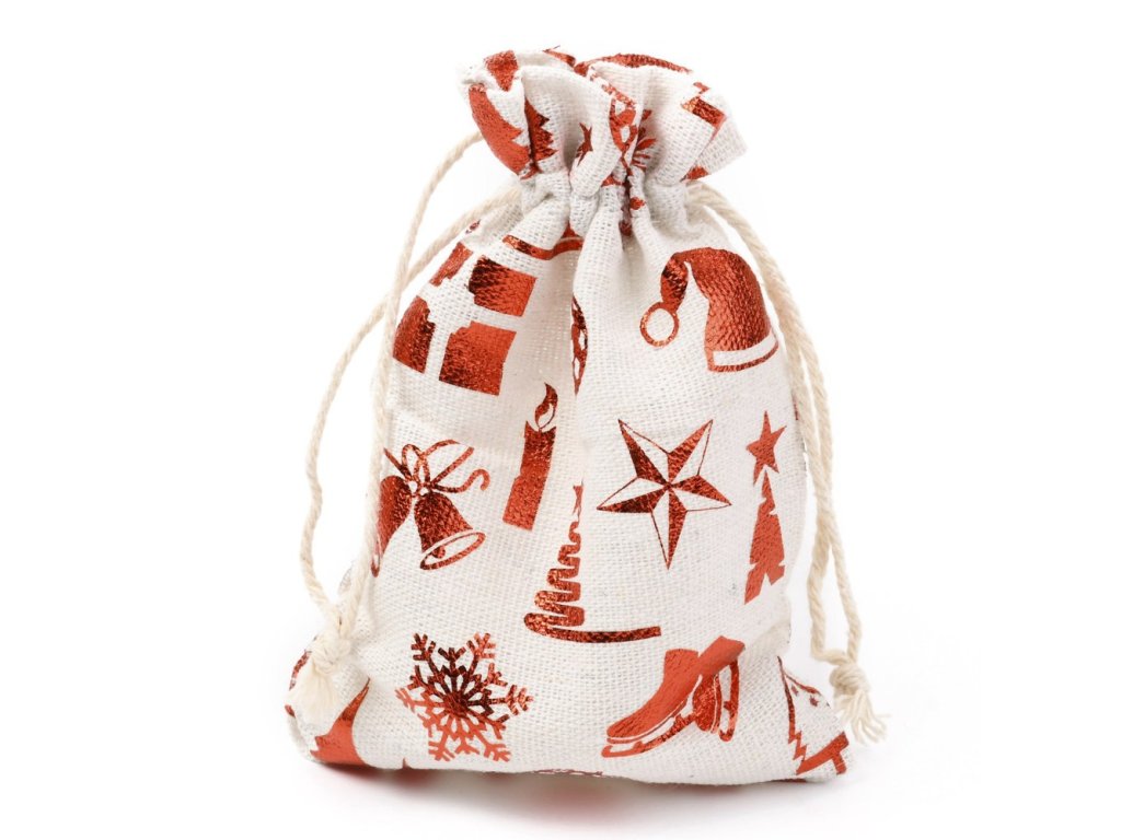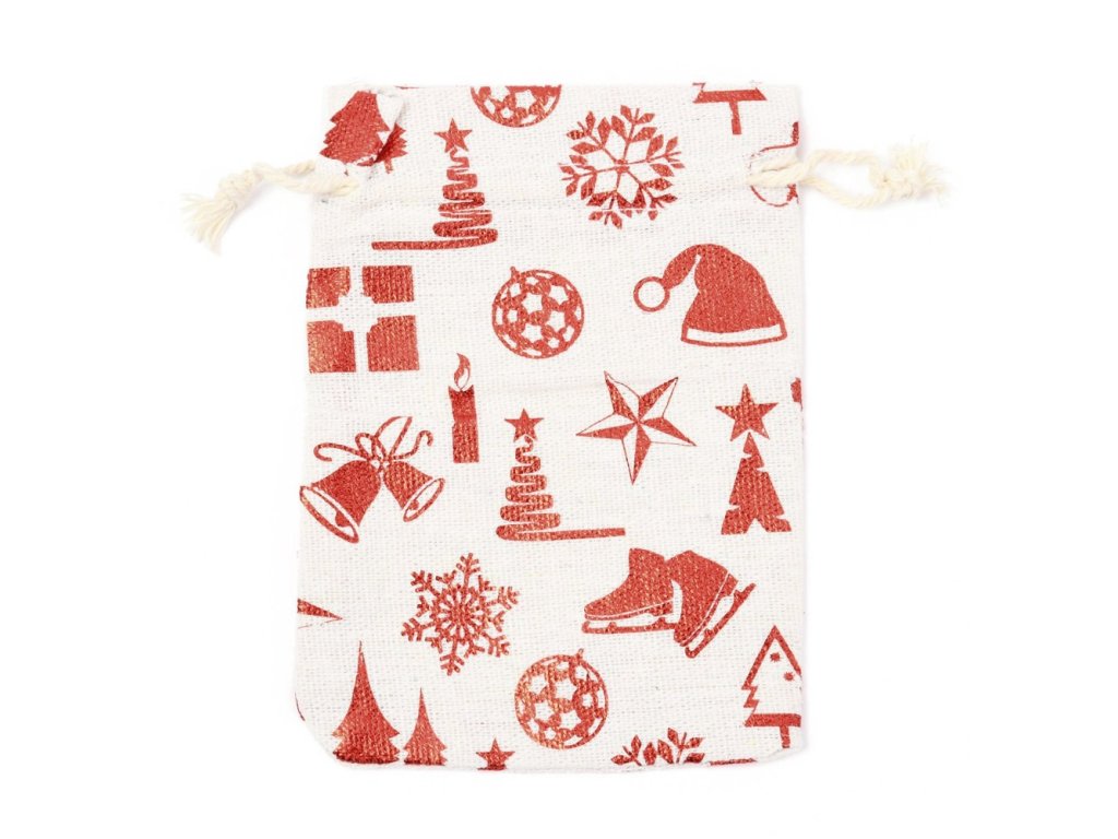 Bavlněný sáček s vánočním potiskem. Rozměr cca 14x10 cm