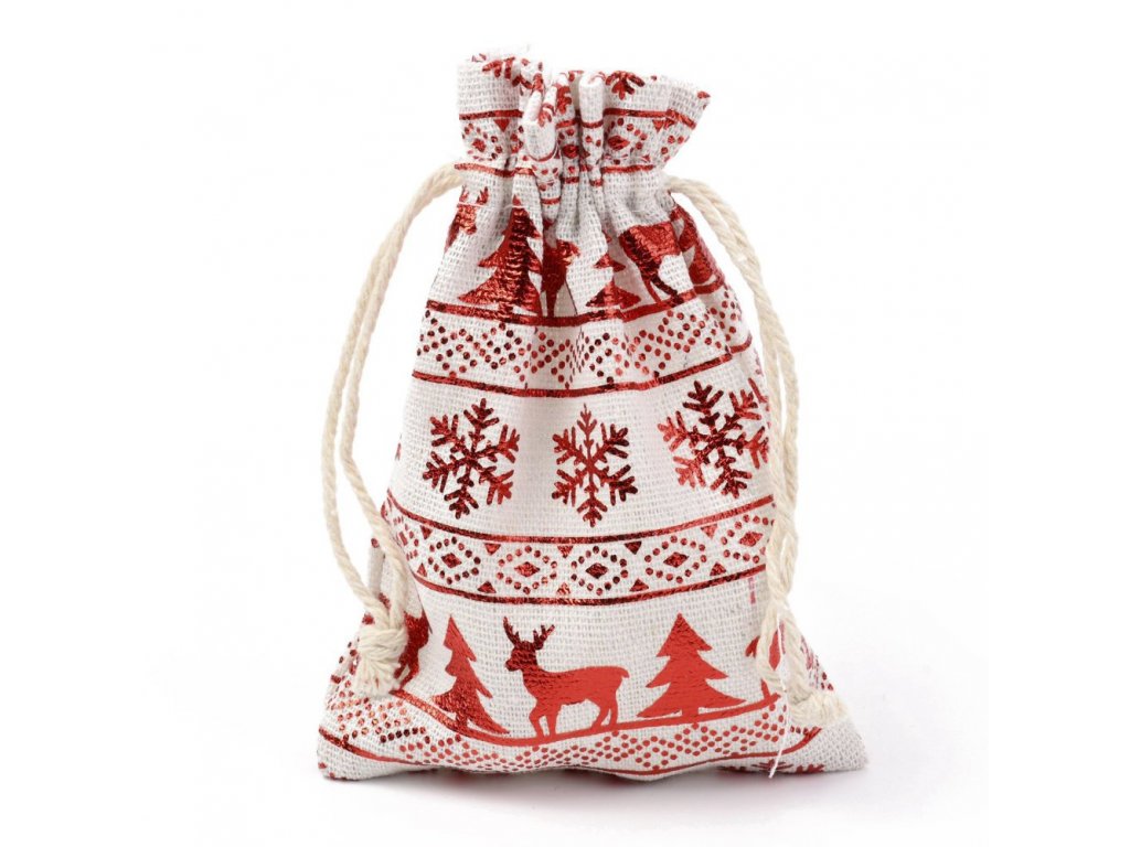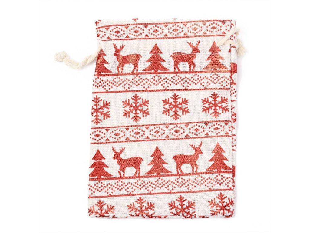 Bavlněný sáček s vánočním potiskem. Rozměr cca 14x10 cm