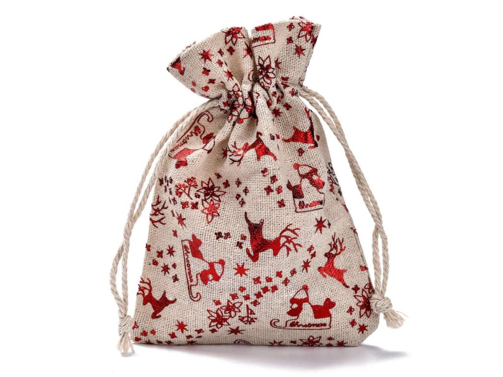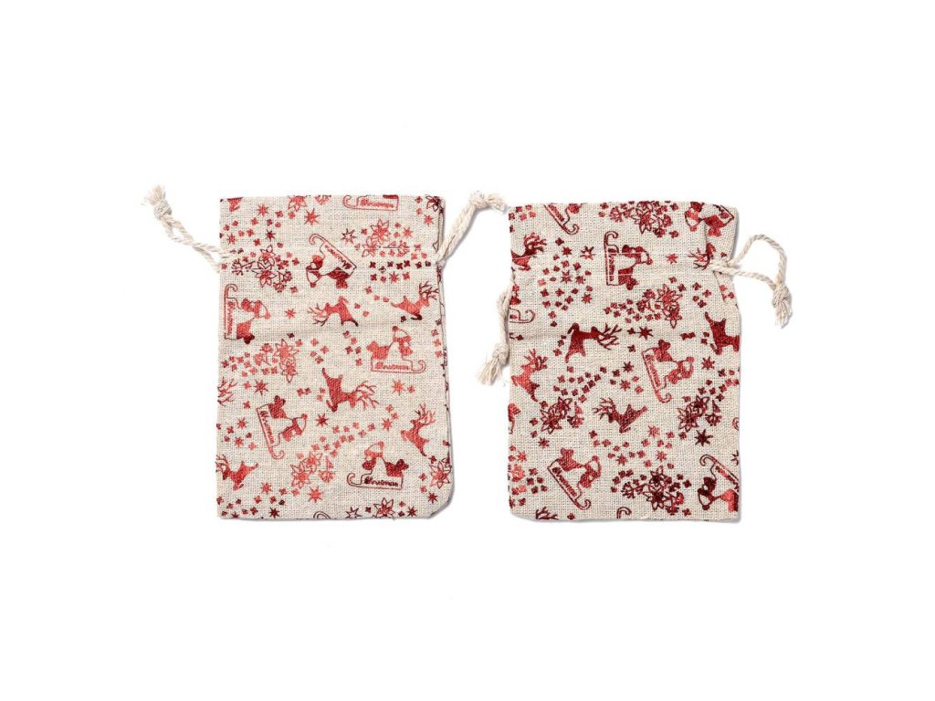 Bavlněný sáček s vánočním potiskem. Rozměr cca 14x10 cm