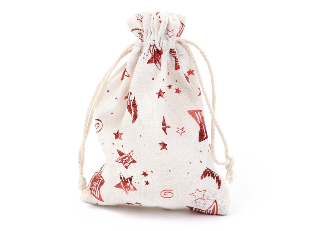 Bavlněný sáček s vánočním potiskem. Rozměr cca 14x10 cm