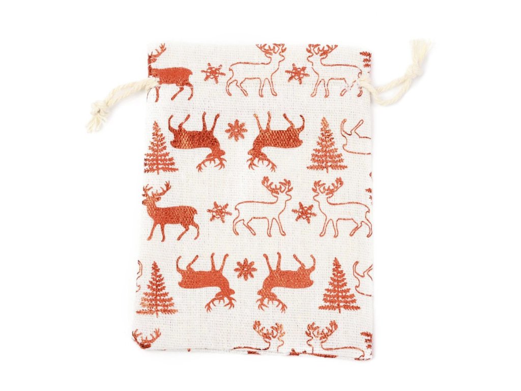 Bavlněný sáček s vánočním potiskem. Rozměr cca 14x10 cm