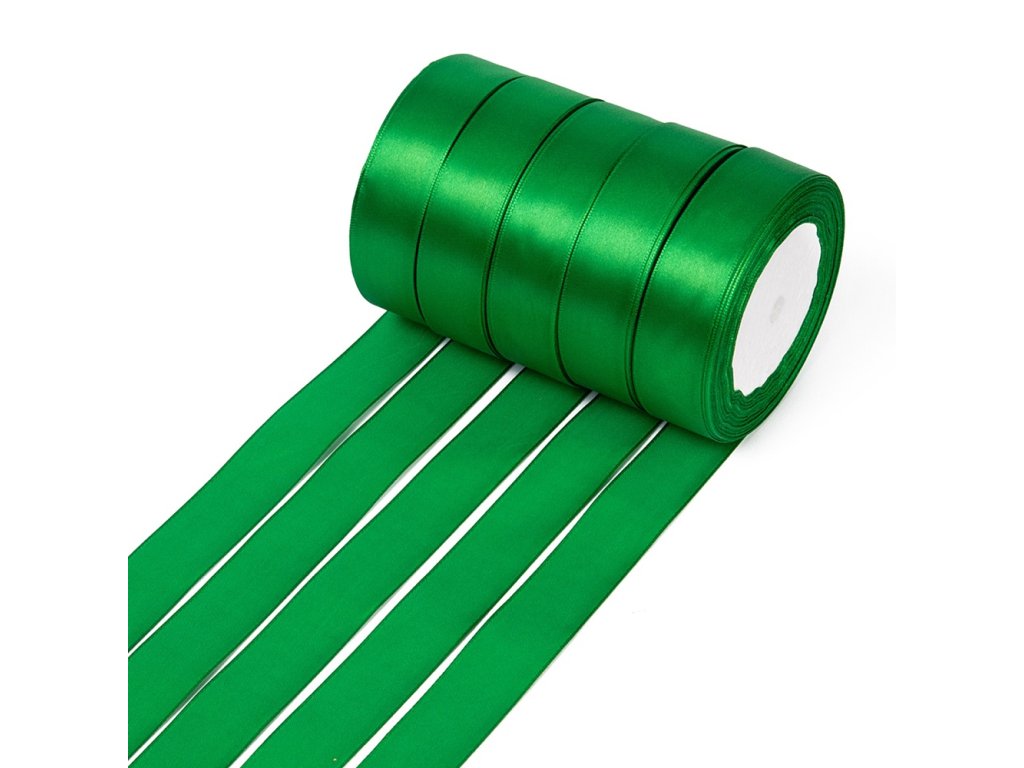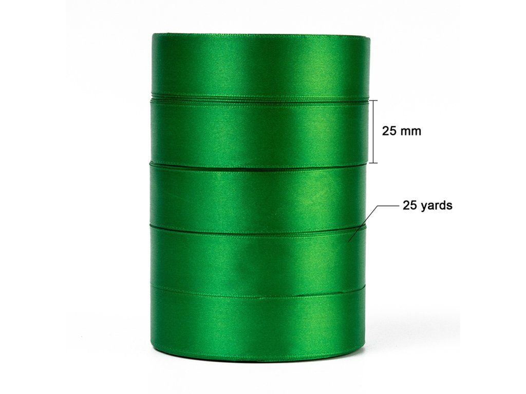 Vánoční saténová stuha 25mm zelená, role cca 22m