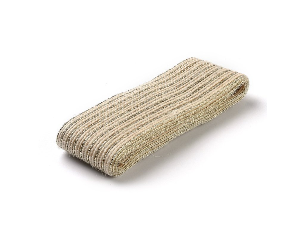 Vánoční stuha pytlovina s hedvábím 38mm béžová cca 2m