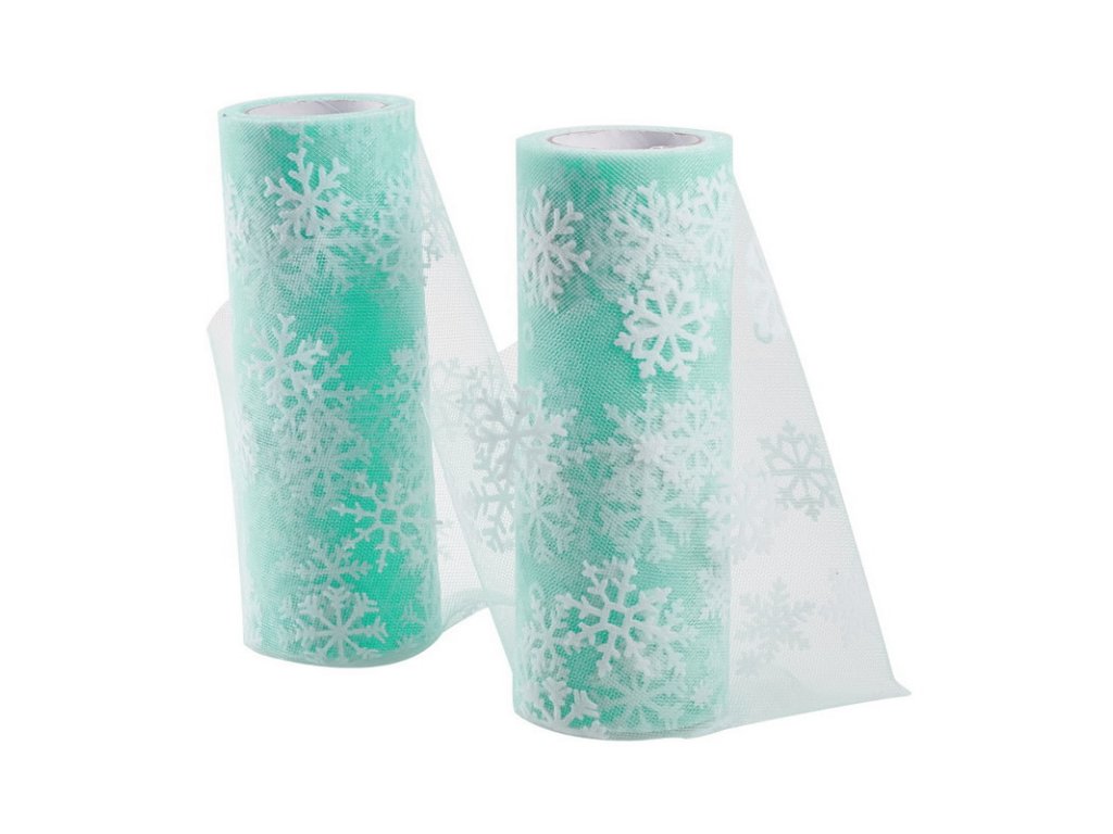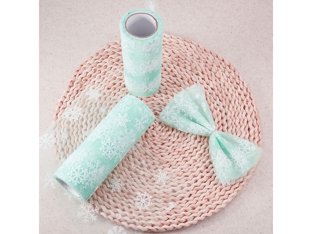 Vánoční stuha z organzy světle zelená šířka 15 cm délka cca 9m