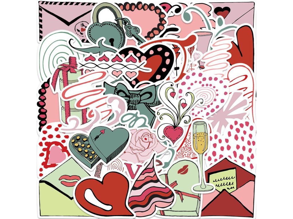 Voděodolné samolepky z PVC, sada cca 41 kusů samolepek, rozměr cca 30~60mm