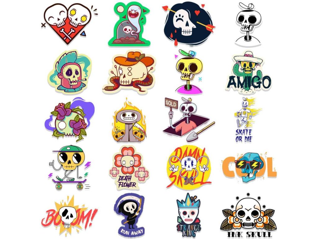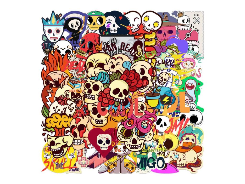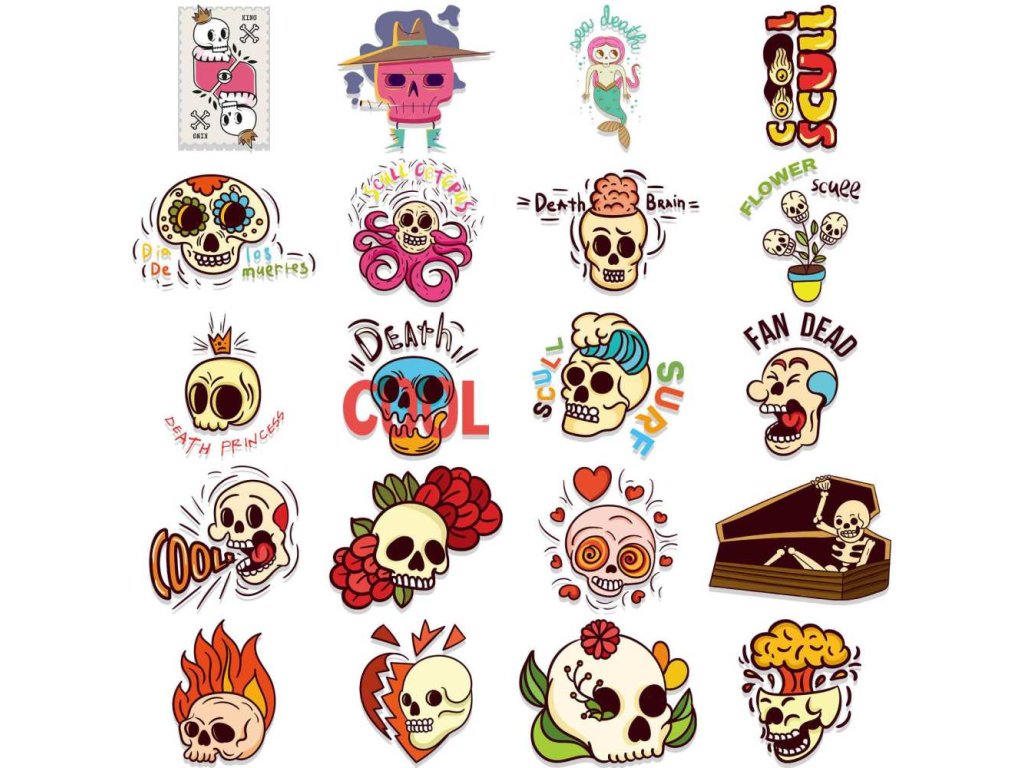 Voděodolné samolepky sada 46 kusů - lebka