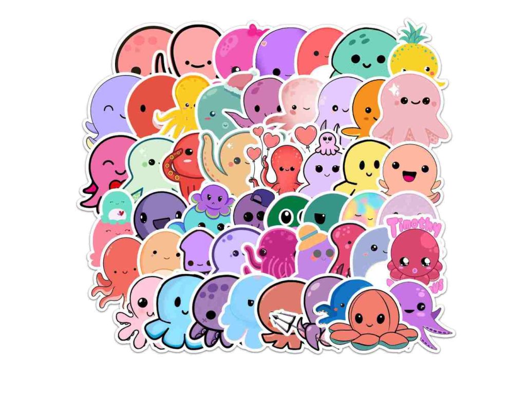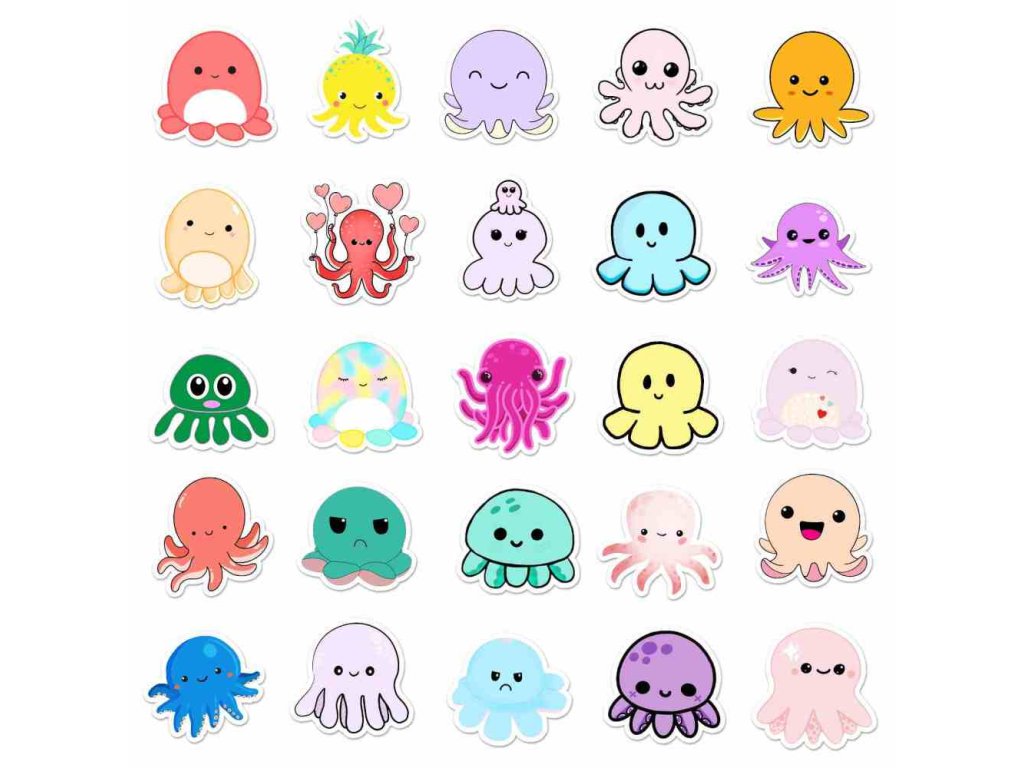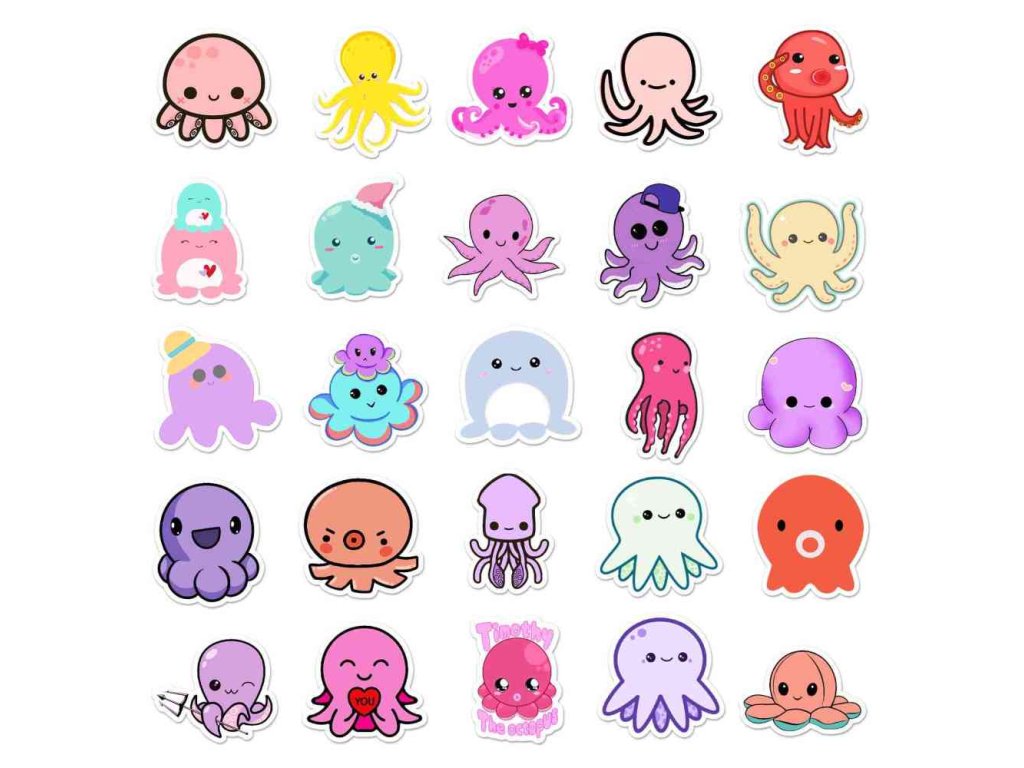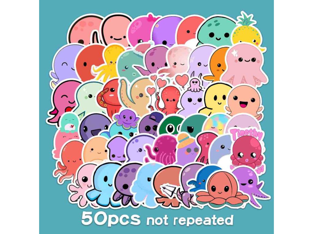 Voděodolné samolepky sada 50 kusů - chobotničky