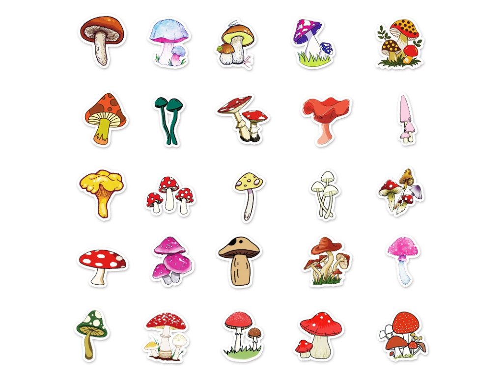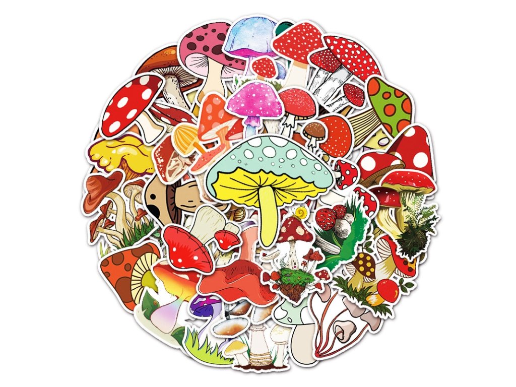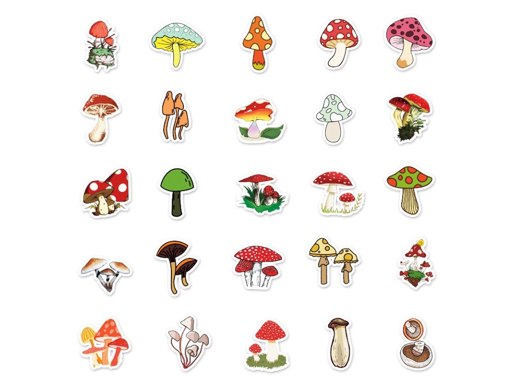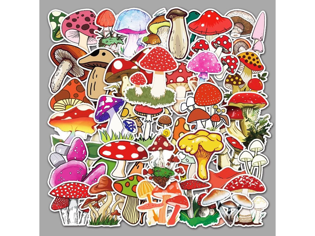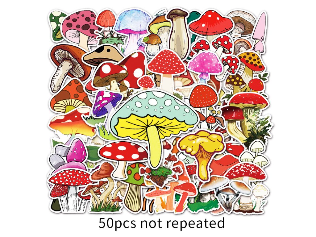 Voděodolné samolepky sada 50 kusů - houby muchomůrka