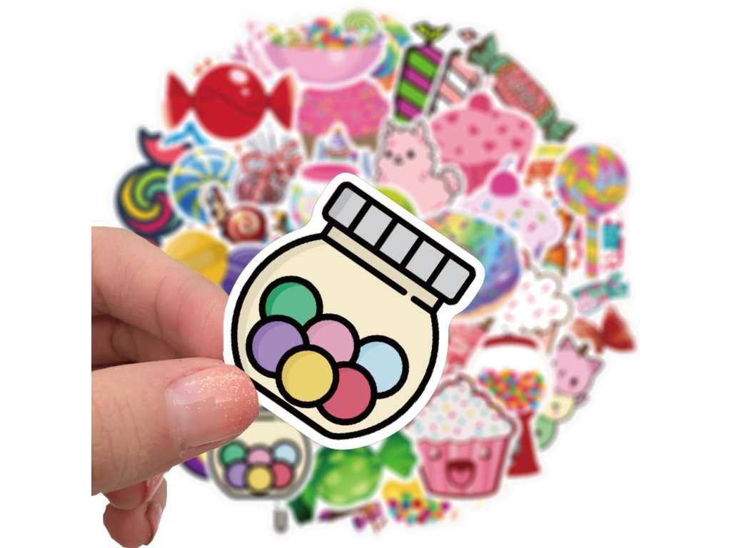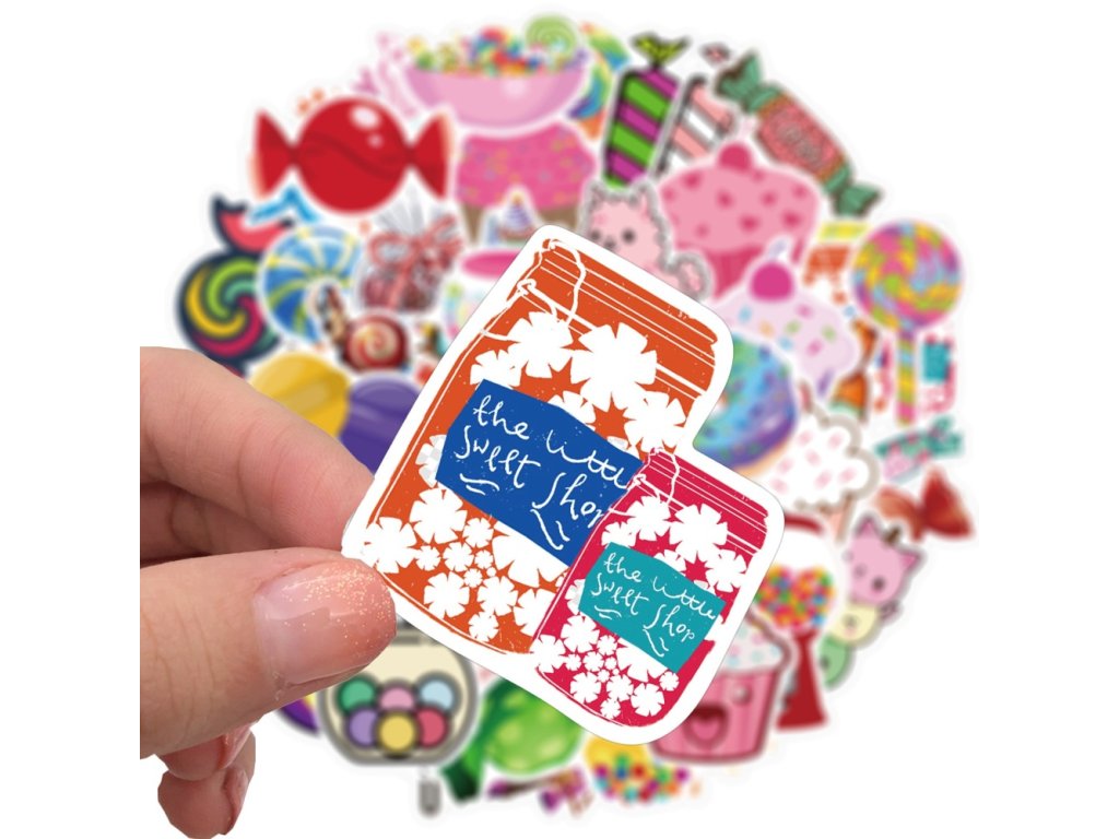 Voděodolné samolepky z PVC, sada cca 50 kusů samolepek, rozměr cca 25~59x60~80mm