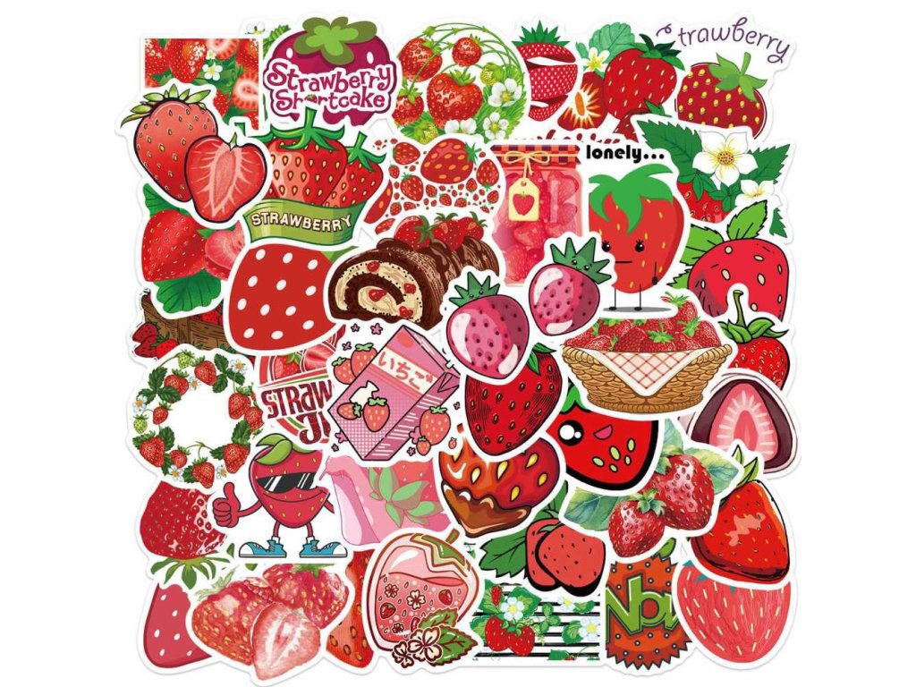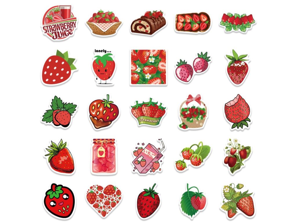 Voděodolné samolepky sada 50 kusů - ovoce jahoda