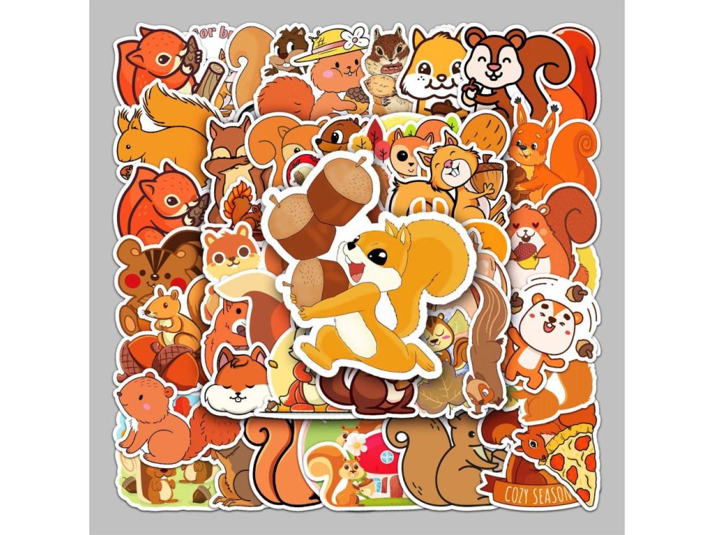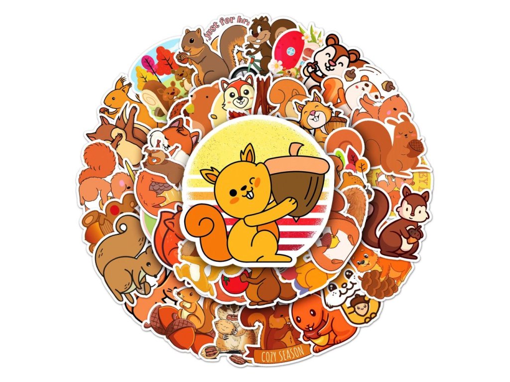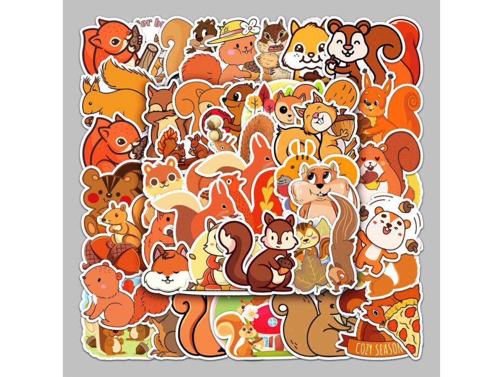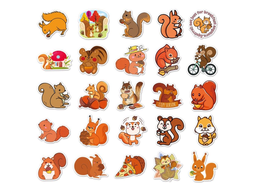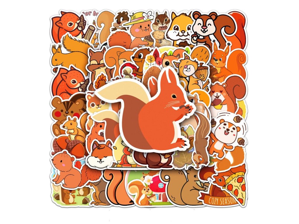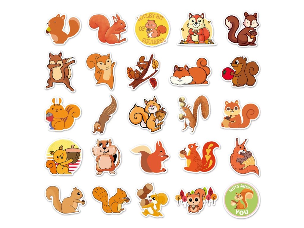 Voděodolné samolepky sada 50 kusů - zvířátka veverka